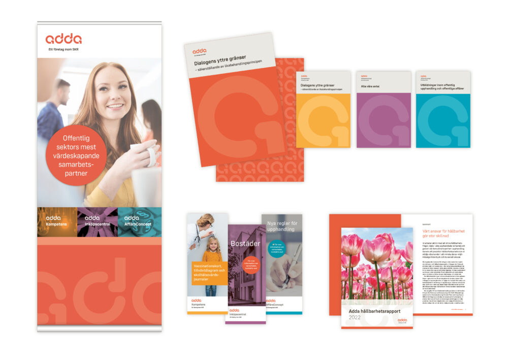 Logotyp och grafisk profil till Adda (f.d. SKL Kommentus), ett företag inom SKR, Sveriges kommuner och regioner. Uppdraget omfattade Adda koncern och dess tre affärsområden. I samarbete med Adam Herlitz Form.
