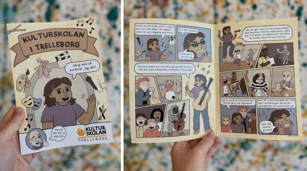 Swish kort till appen swish med en färgglad illustration på människor och armar som skåla med kaffe.