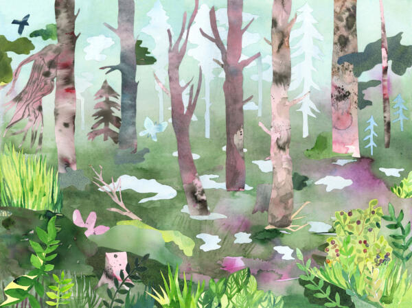 Illustrationen "Skymningssaga" - ritad för att tryckas storskaligt på tyg, affischer och plagg.