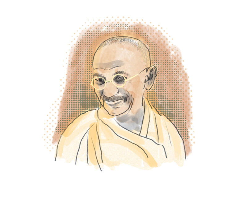 Mahatma Ghandi, porträttstil för historiska personer i Om SO, Religion.