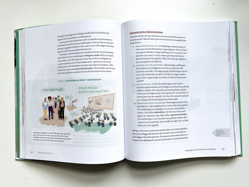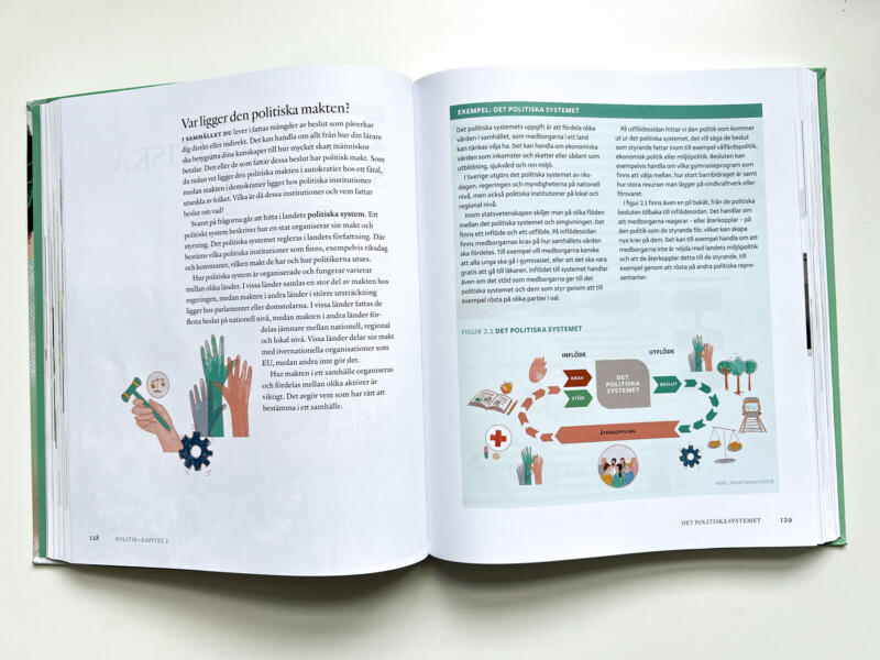 Läromedel i Samhällskunskap för gymnaiset åt Natur&Kultur. Jag gör grafisk form, illustration, diagram, omslag och bildredaktörskap. Publicerad i mars 2026.