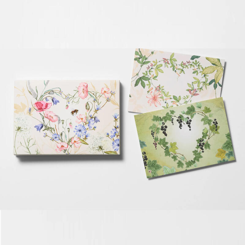 Presentask med åtta stycken illustrerade kort, ”Med Kärlek”