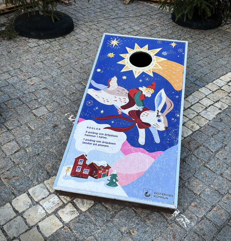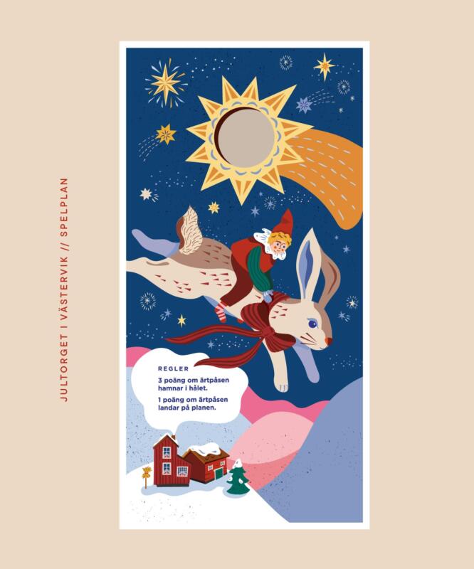 Illustrationer till 2024 års jultorg i Västervik. Kommunen erbjuder medborgarna en julkuliss att samlas och umgås kring. Illustrationernas mål är bidra med stämning, lekfullhet och färg i vintermörkret.