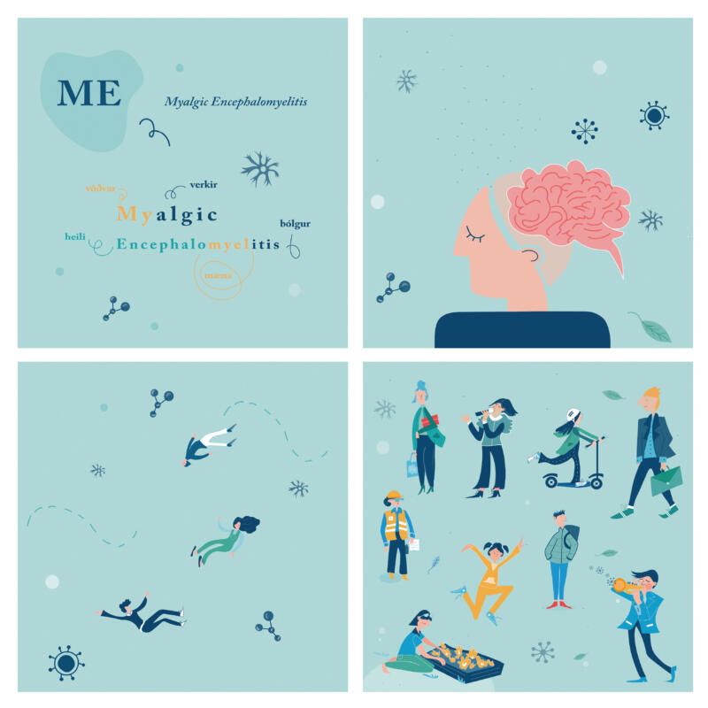 Kunduppdrag för ME-föreningen, Island.  Illustrationer för en rörlig grafik. Kampanj för internationella ME-dagen