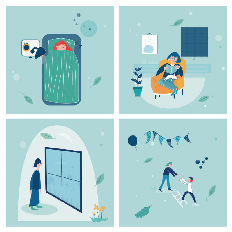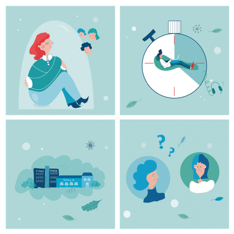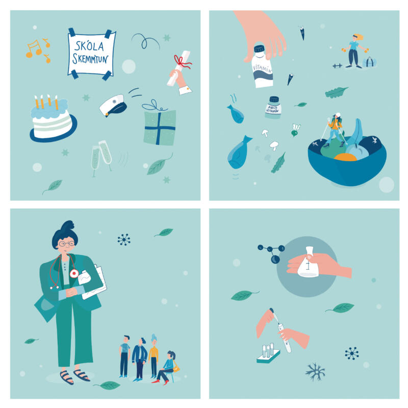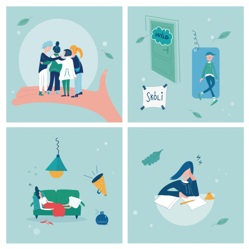 Kunduppdrag för ME-föreningen, Island.  Illustrationer gjorda för en rörlig grafik.