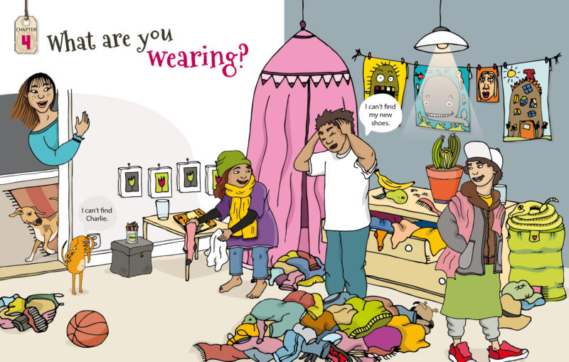 Grafisk formgivning och illustrationer till läromedel. En serie i engelska för Sanoma Utbildning, förskoleklass – åk 6.