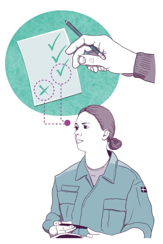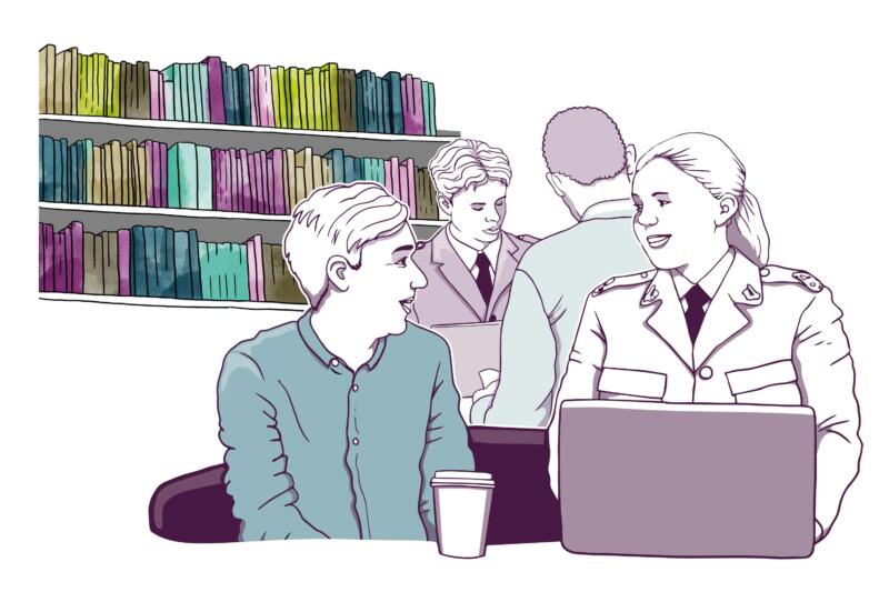 Illustration till trycksak om Officersprogrammet vid Försvarshögskolan. Pågående projekt, illustration och grafisk formgivning.