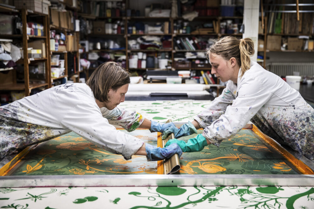 Ivar Lantz & Elvira Varghans screentrycker i verkstaden. Foto: Emmalisa Pauly