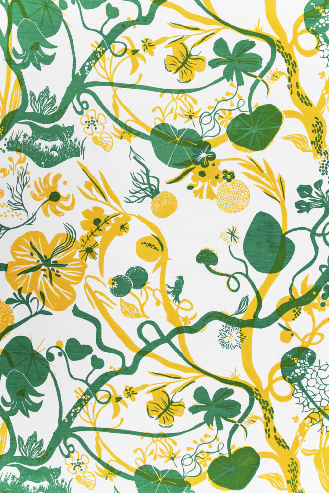 "Brandnäva" Handtryckt mönster grön/gul Foto: Emmalisa Pauly