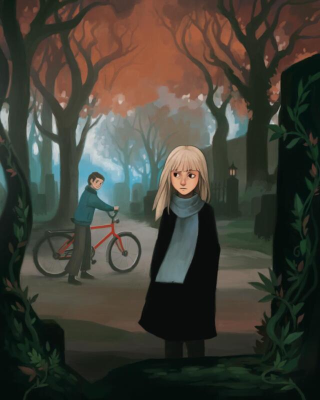 Bokomslag och kapitelvinjett till Den röda cykeln, skriven av Cecilia Fransson.