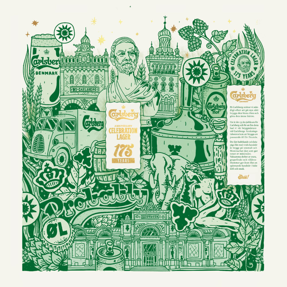 Illustration, art direction and design for the box to the Carlsberg Aniversary lager.