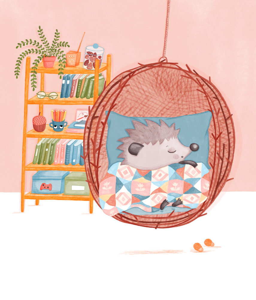 Picture book about Prickles, the little hedgehog, who wakes up one day to realise his favorite hat is gone. Disaster.