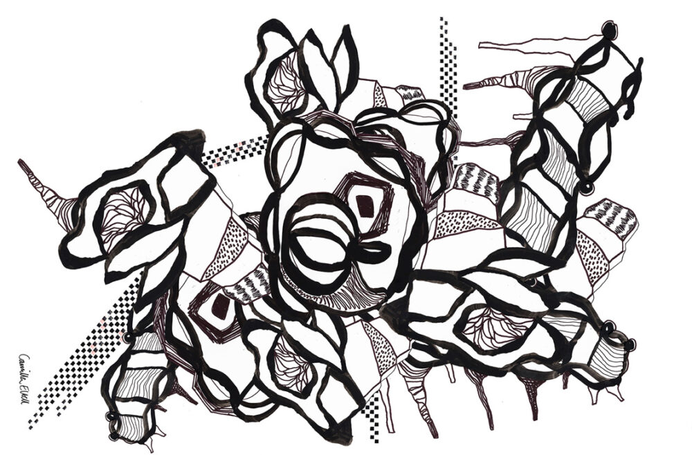 Tusch and collage about building bridges and communicate. Available as artprint and as textile pattern.