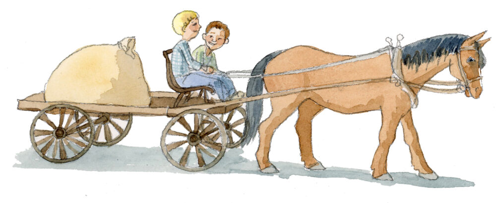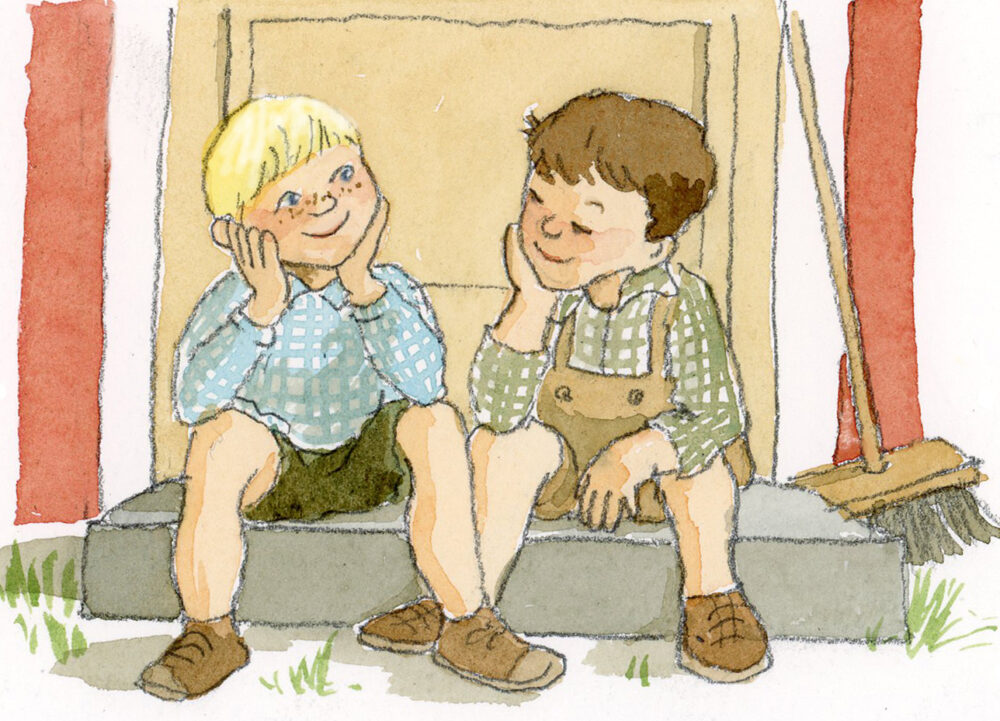 Olle and Lennart on the stairs. From the book Olle's goodnight stories.