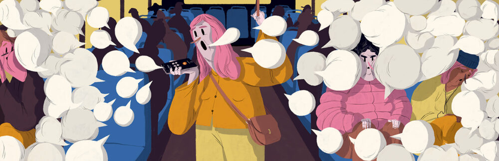 For a text by Andrev Walden regarding people who take up our common space by talking on the speaker phone.