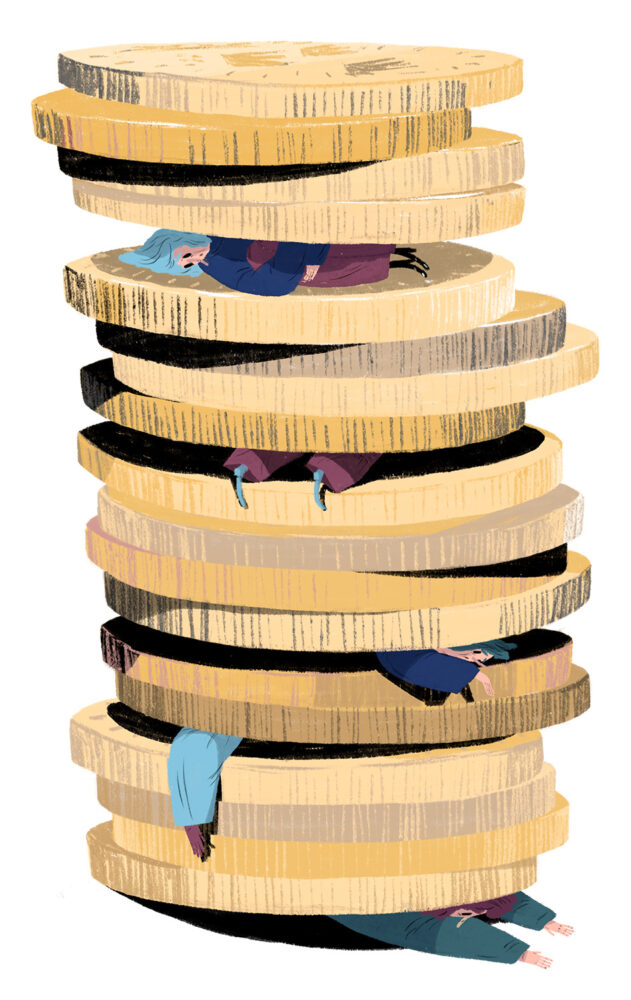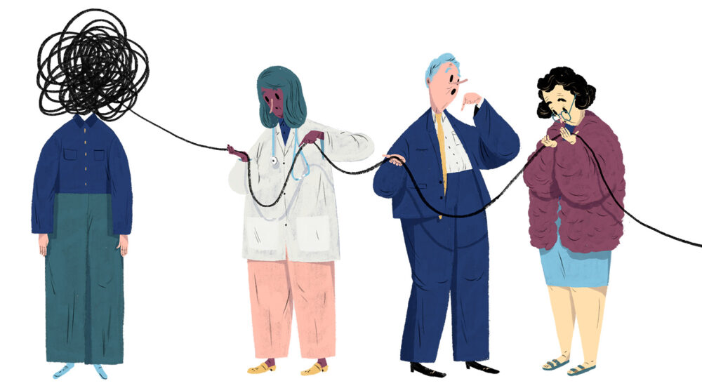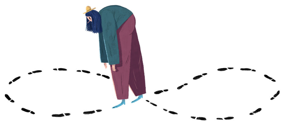 Cover and inside illustrations on the theme burn out syndrome, published 2021.