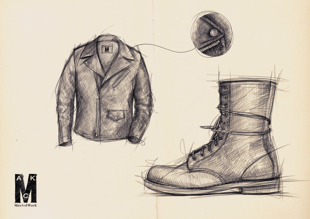 Sketches of motorcycle fashion for the apparel brand Mack of Mack.