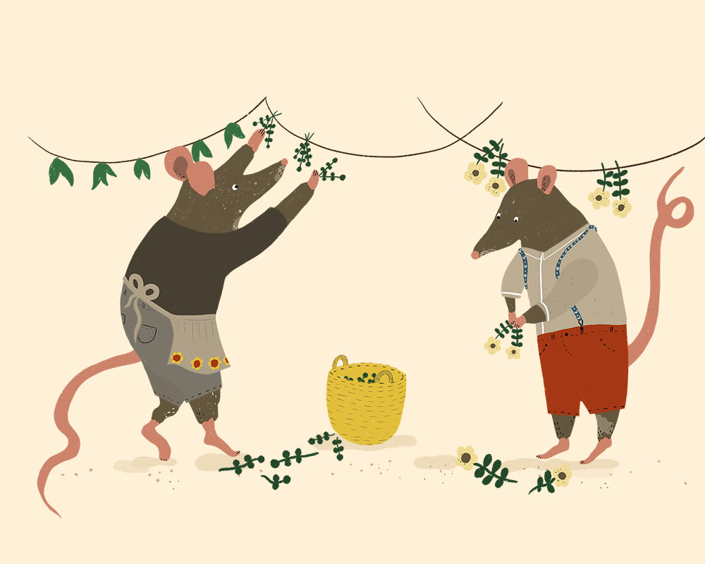 Mice drying flowers