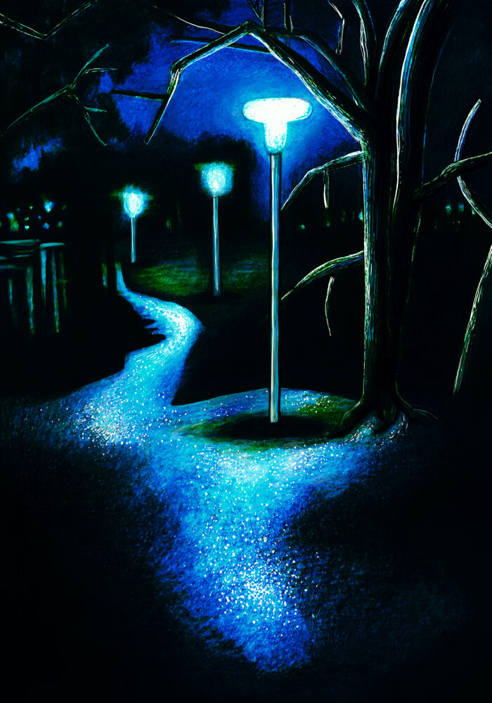 Lötsjön a rainy night, Colored pencils