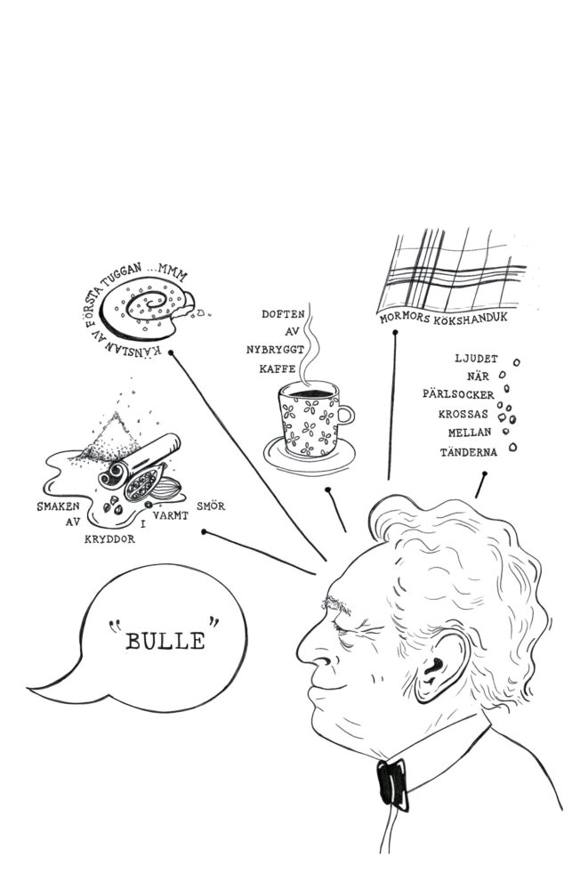 Image describing Saussure's theory. When the man in the picture hears or sees the word "bun", he immediately gets memories and associations. The word itself and the characters in the word "BUN" are arbitrary. It is the context and experiences that make the man create a meaning of the word.