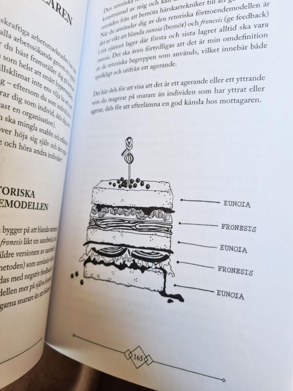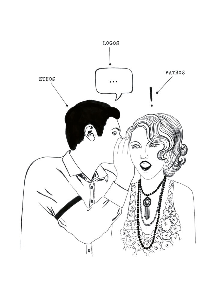 An image describing the relationship between ethos, logos and pathos. In the project, I first got to read the book and then make sketches and ideas for pictures that could support and explain the text. After briefing and in some cases more sketches, I made a suggestion for a final illustration.