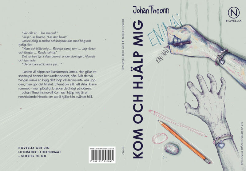 The cover (front and back) of the book Kom och hjälp mig by Johan Theorin.