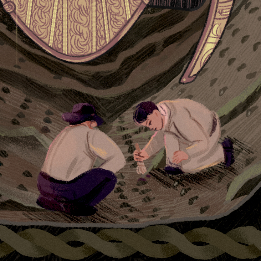Personal project inspired by the article “Revisiting Sutton Hoo, Britain’s Mythical Ship Burial” from the New Yorker, detailing the history of the Anglo-Saxon archeological site.