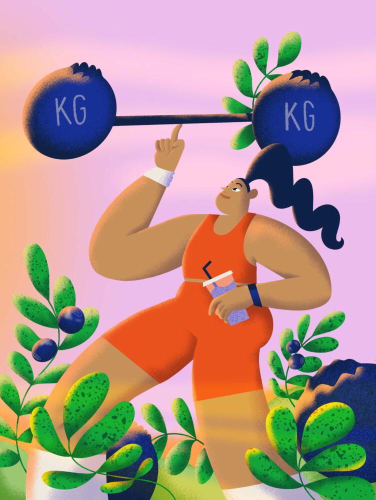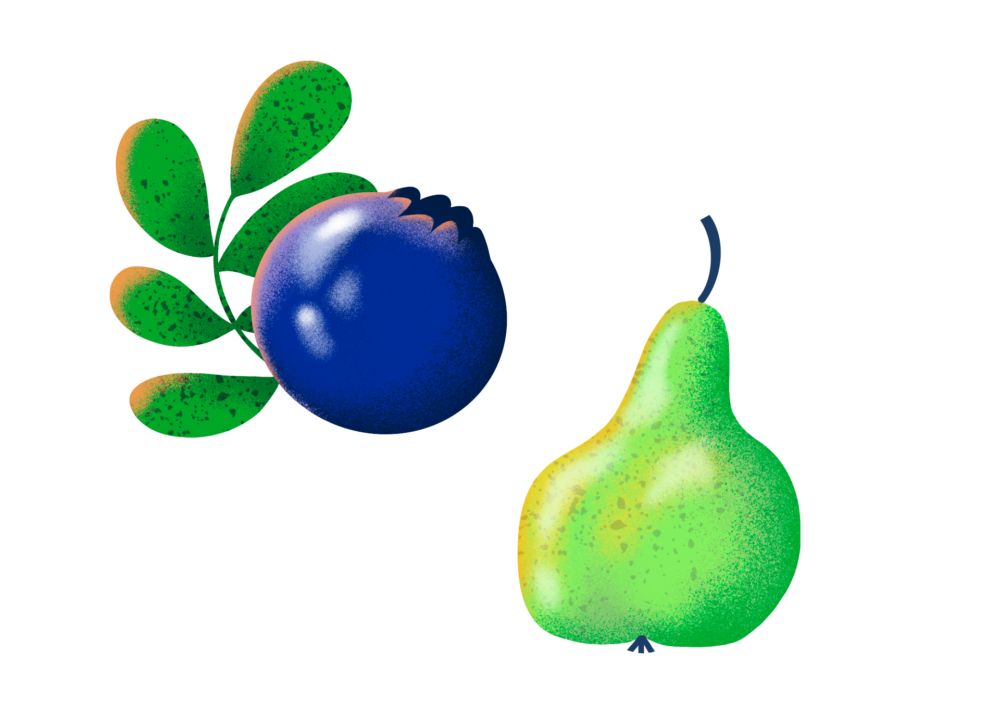 Illustration for a cook book from a fictive dairy with the theme ’breakfast joy’ and focus on fruits and berries. This illustrations uses humor and playfullness to portray what breakfast joy can look like.
