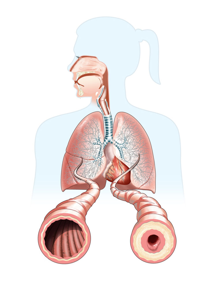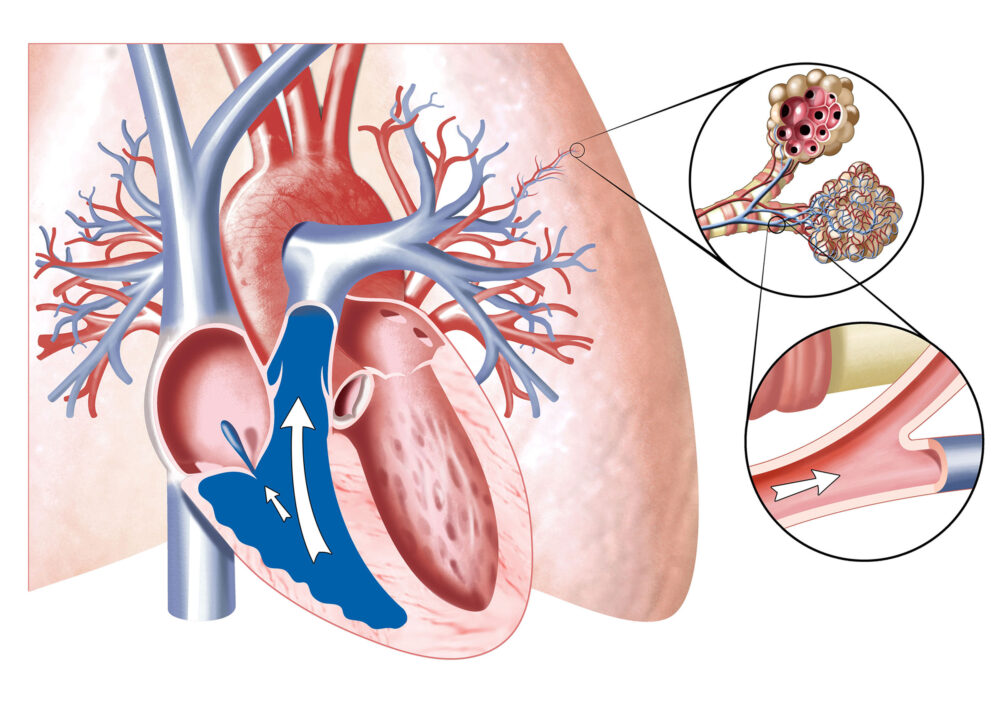 Narrowing of the lungs' small blood vessels reduces blood flow to the lungs.