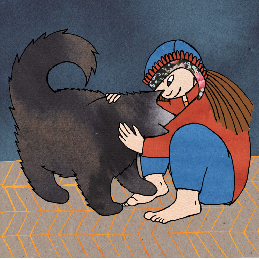 Sara and the dog from an animated story för UR 2017. Text by Ann-Helen Laestaius