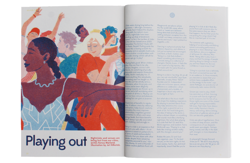 Illustration for an article about how the pandemic caused nightclubs and venues to shut down, simultaneously losing the adult experience of ”play”.