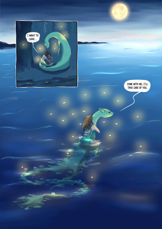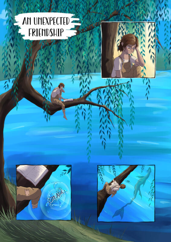 During the second year at Medlefors folkhögskola we were given the open task of writing and drawing a 5 page long comic with a theme and artstyle of our choice. I chose to write a story about loneliness, hostility and a mysterious creature who shows another way of life.