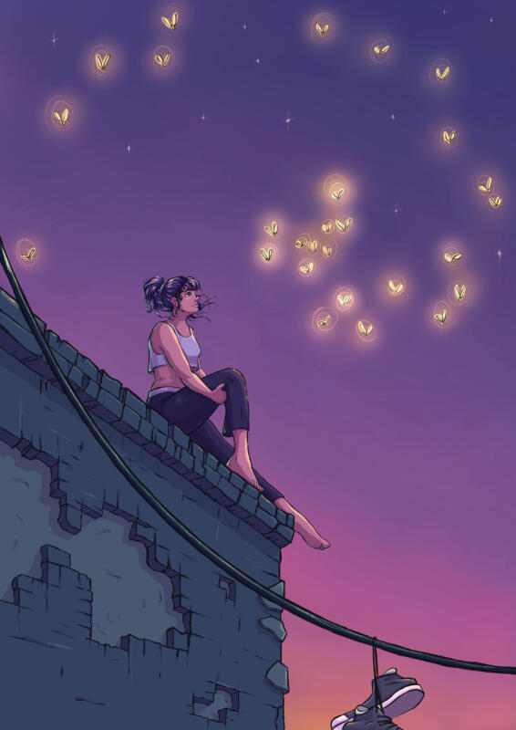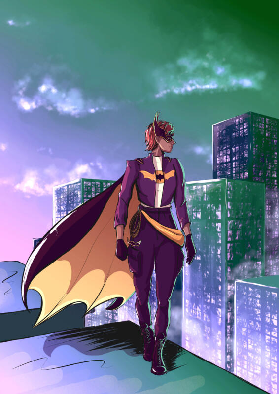 The task to redesign Batgirl and the world she lives in. This is my design of a more modern Batgirl dressed in clothes that are both comfortable and practical, in a city that has a futuristic feel.