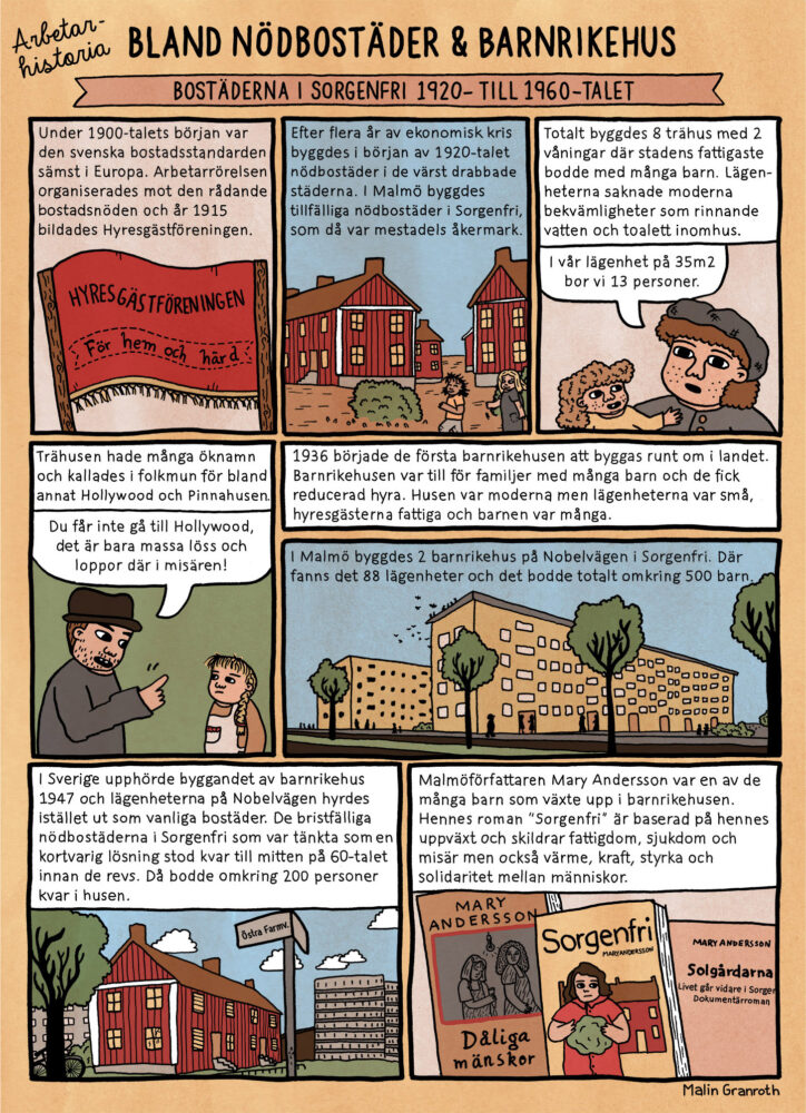 Comic about the livingsituation in Sorgenfri, Malmö, during 1920 – 1960.