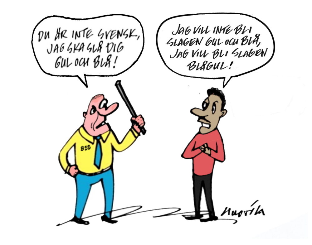 Cartoons to a monthly paper in well-known Stockholm suburbs.
