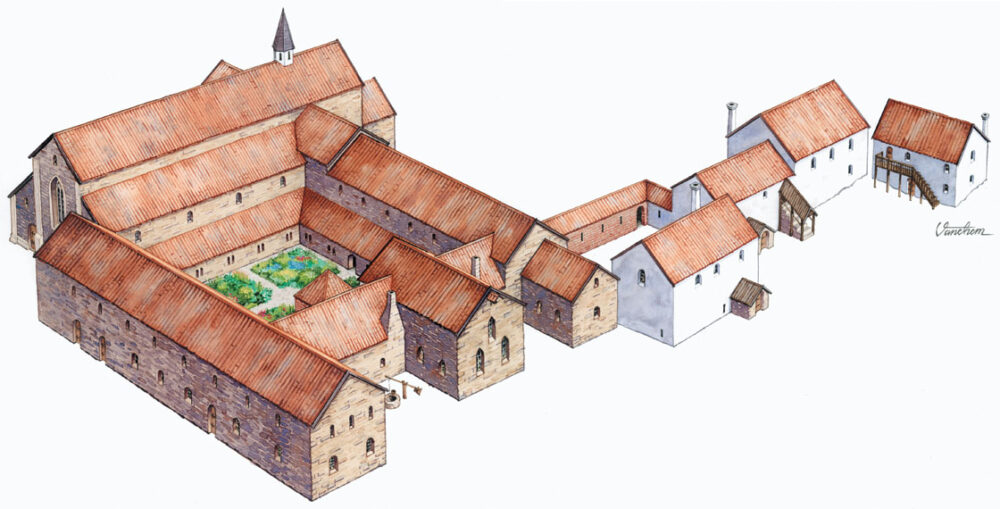 Illustrated reconstruction of the Alvastra monastery ruin