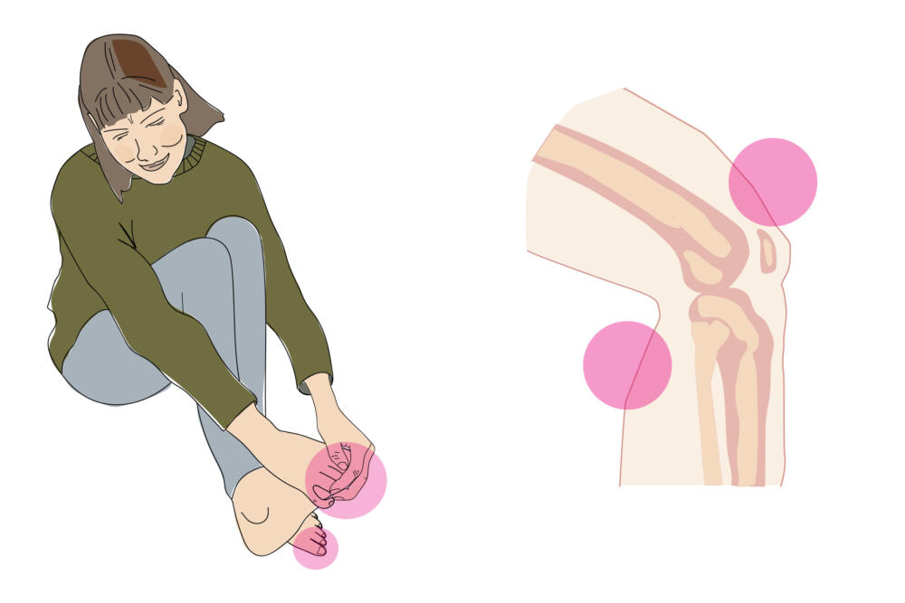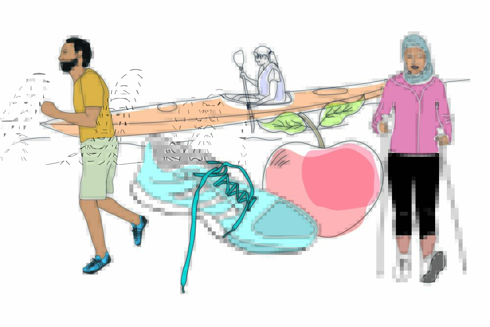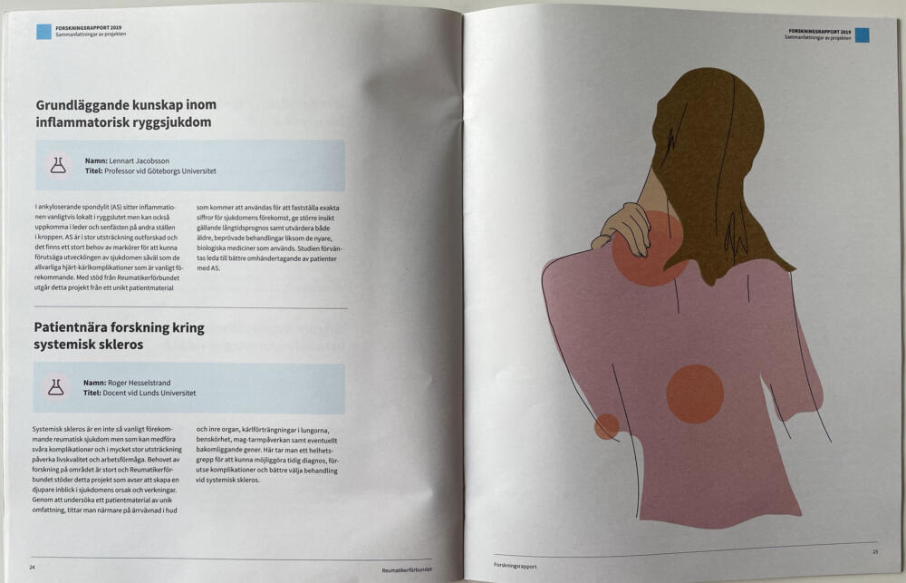 Illustrations made in vector graphics for a research supplement for the Rheumatism Association. The illustrations are part of a series of images that touch on the subject of rheumatic disease, physical activity and lifestyle.