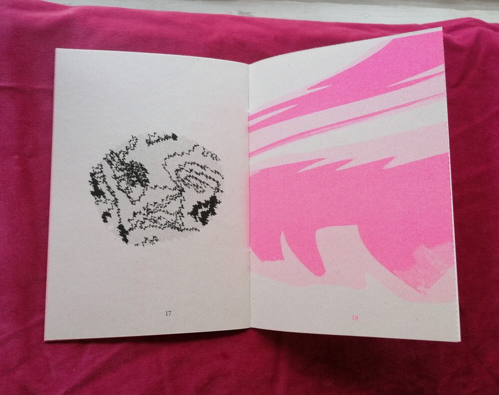 Poetic fanzine with abstract and graphic images. Written, illustrated and published by me.