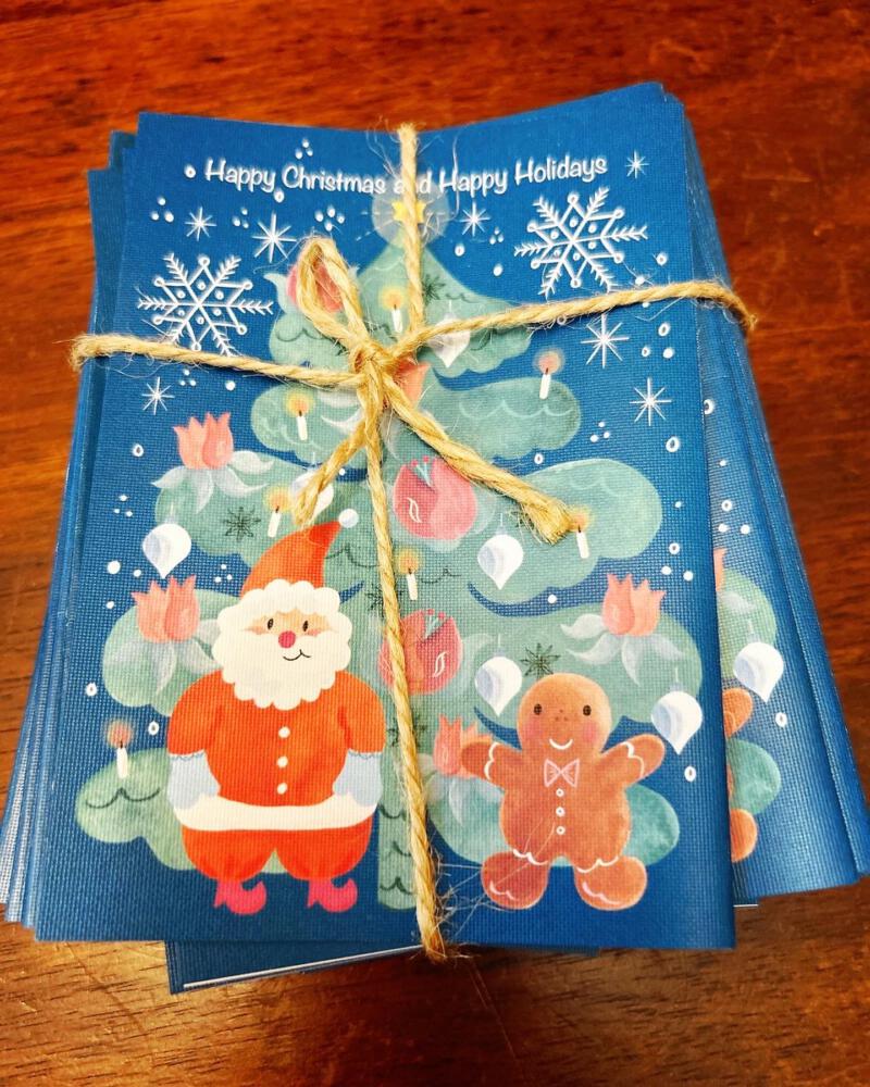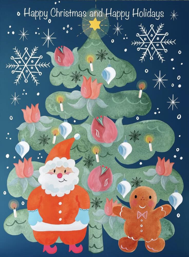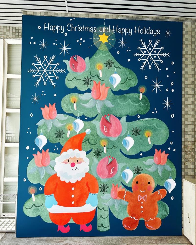 I had the pleasure of creating inspirational Christmas art for a elementary school in Taipei, Taiwan. The assingment included a 3,5 m high wall painting with Santa Claus, a long floral wall panel, a bulletin board and Christmas cards. Handpainted in watercolour.