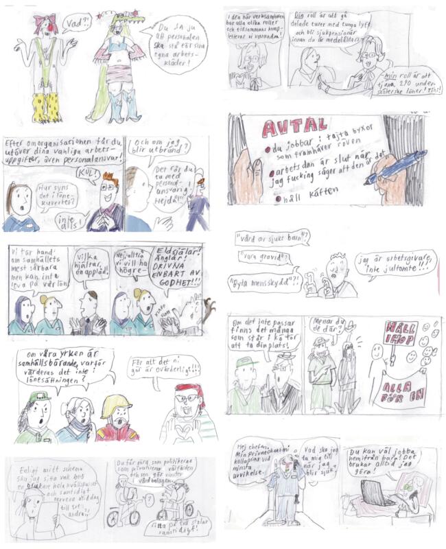 The space for the comics was small (11*5 cm) so part of the challenge was to economize with the space and compress text and images without losing readability.