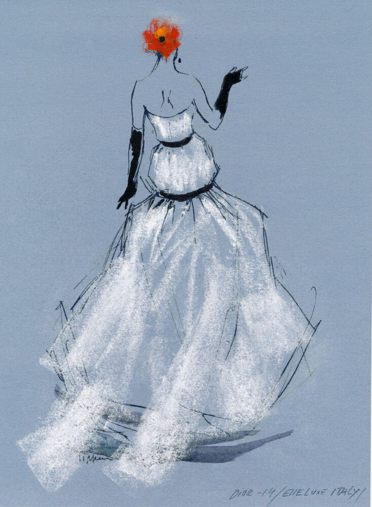Dior. One of nine fashion illustrations  in Italian ELLE Luxe. Whole page.