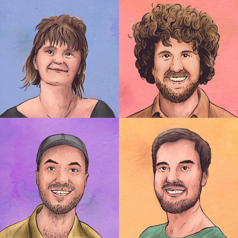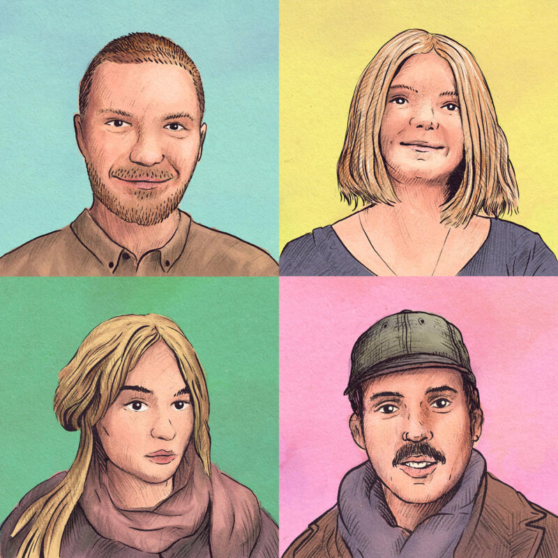 As a part of designing the album artowork for Alla Får Medalj’s record “Låtar om hemma och andra ställen” I illustrated portrait of all eight members of the band.