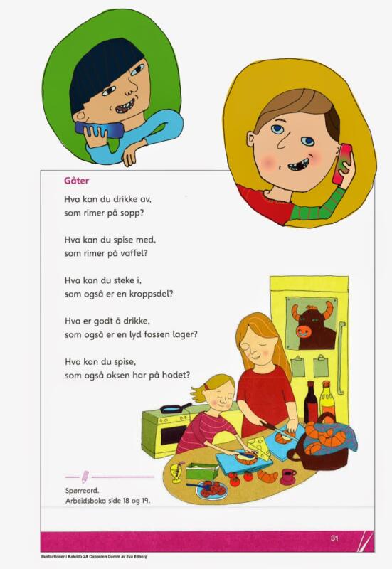 Illustrationer av Eva Edberg till norska skolböcker för elever 7-8 åringar. Ett urval av 30 bilder i ett flertal böcker.