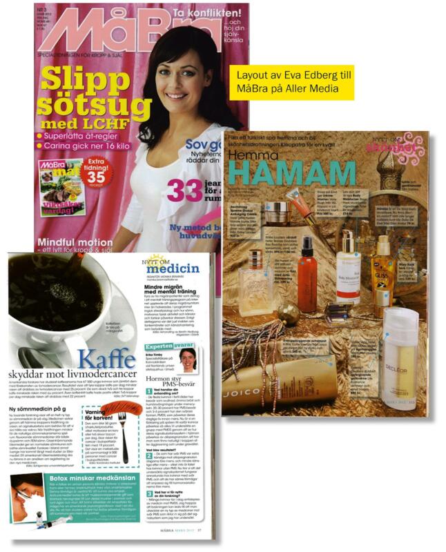Layouter av Eva Edberg i tdiningen MåBra, 2012.