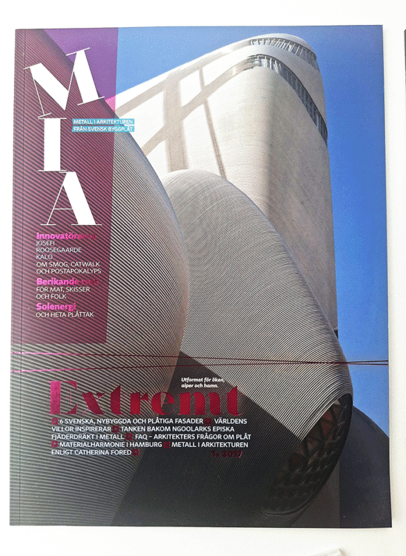 Designar nytt magasin - MIA Metall i arkitekturen. Arkitekturtidskrift från Svensk Byggplåt och Far From Standard. Art Director och produktion med 4 nummer per år.