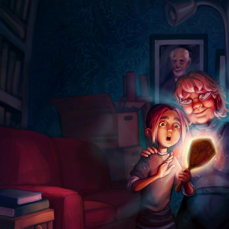 Illustration av "Farmors spegel" skriven av Elin Karlsson
