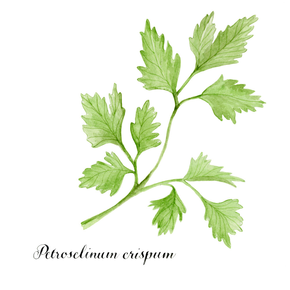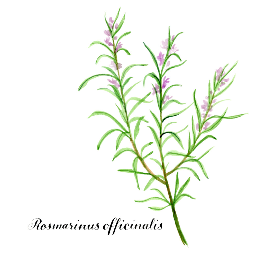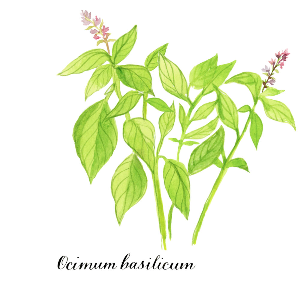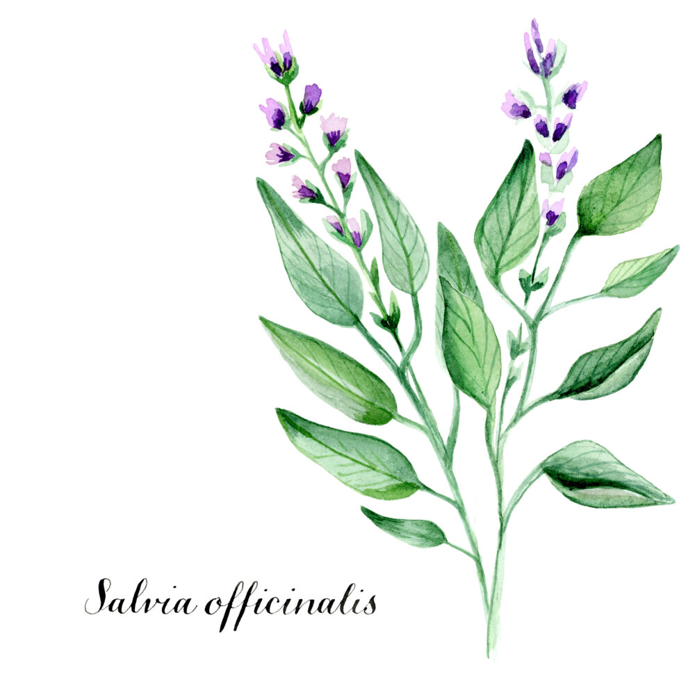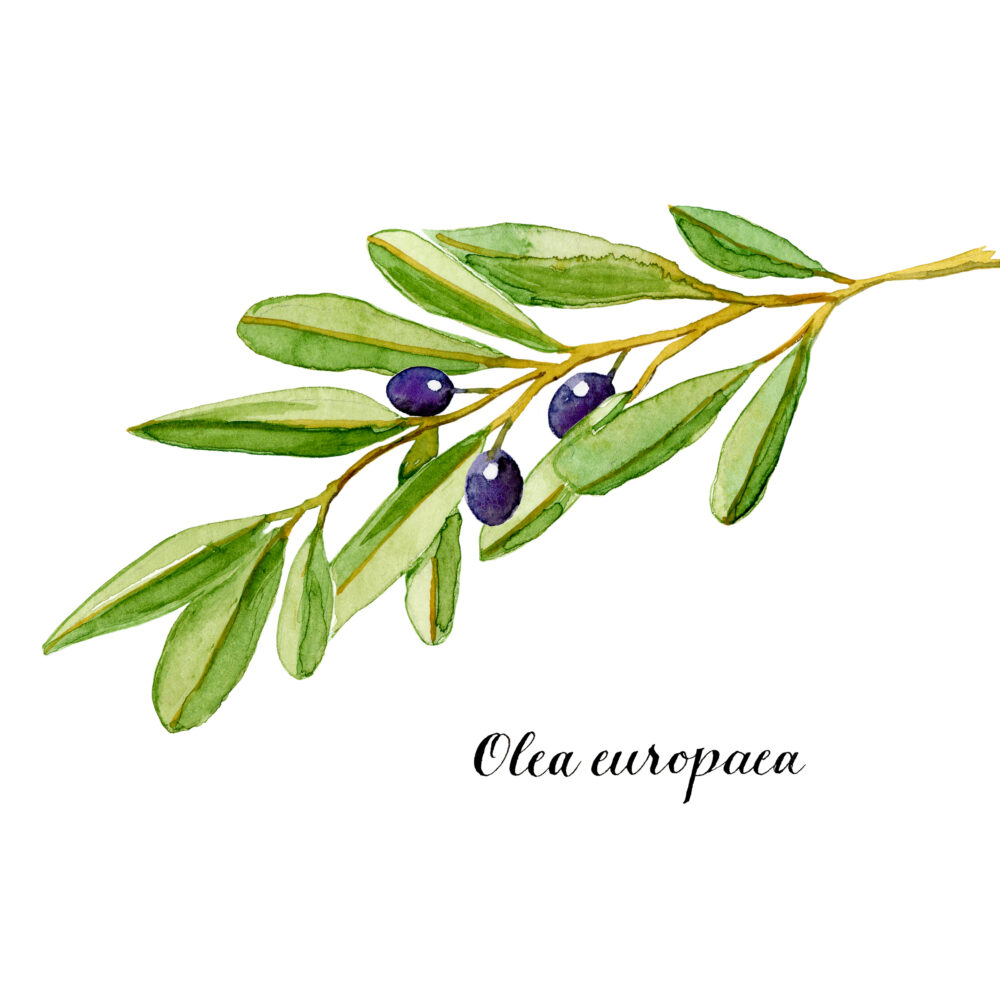 Botaniska illustrationer målade i akvarell med det latisnka namnet skrivet med kalligrafi