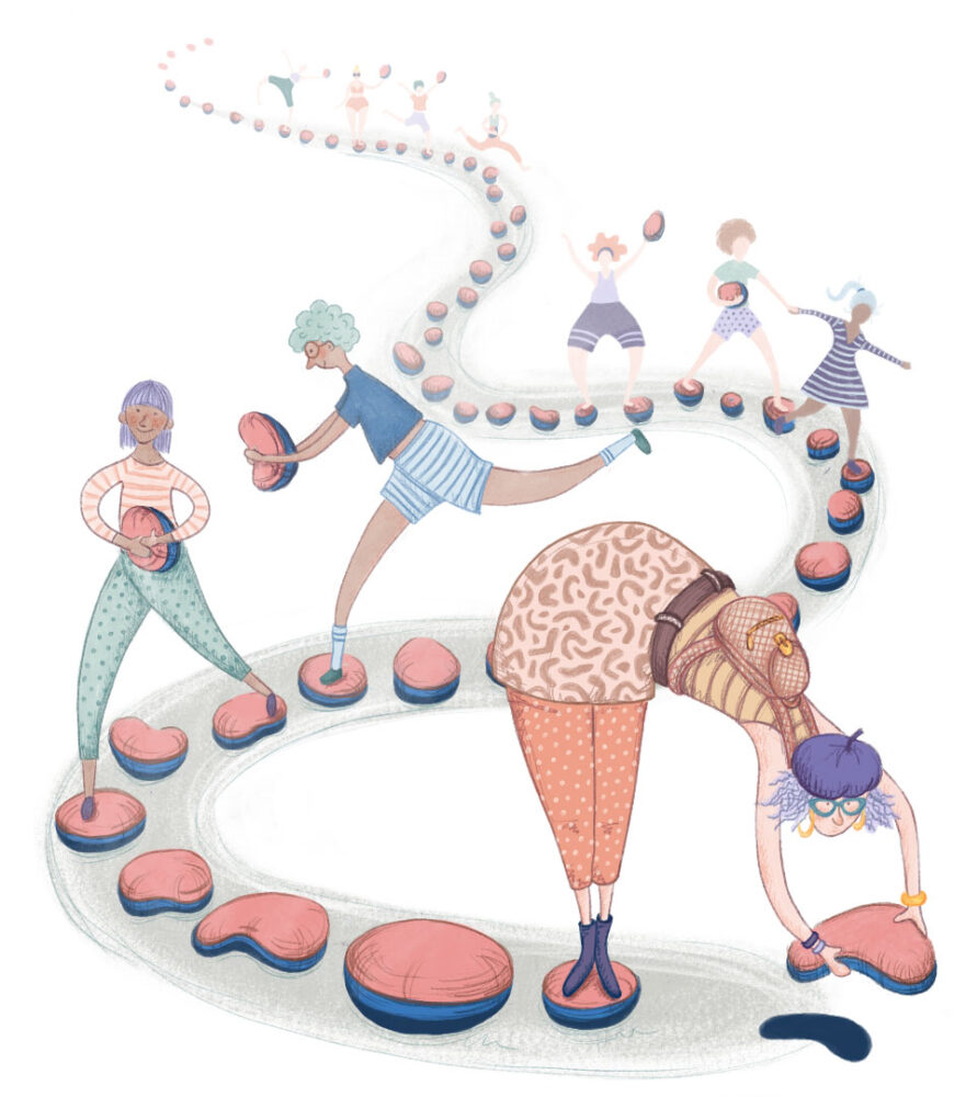 Illustration till en text som beskriver att vi människor påverkas starkt av varandras beteende och agerande. Helt enkelt: om du visar vägen kommer fler att följa efter.