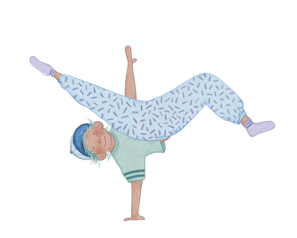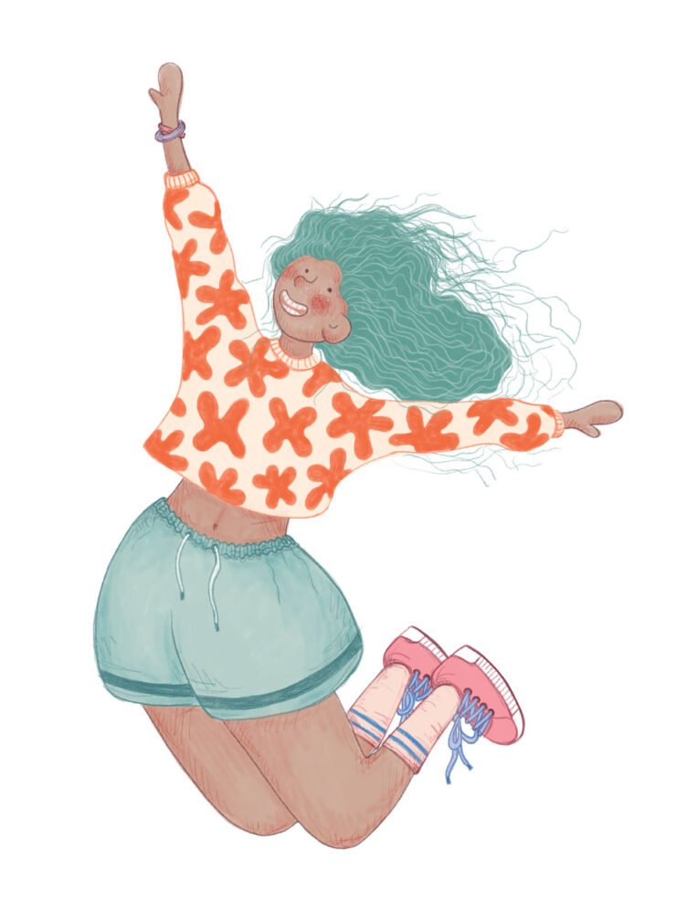 En karaktär från broschyren som visar glädje, framåtanda och energi. Bilden ska få betraktaren entusiasmerad och vilja vara med på det roliga!