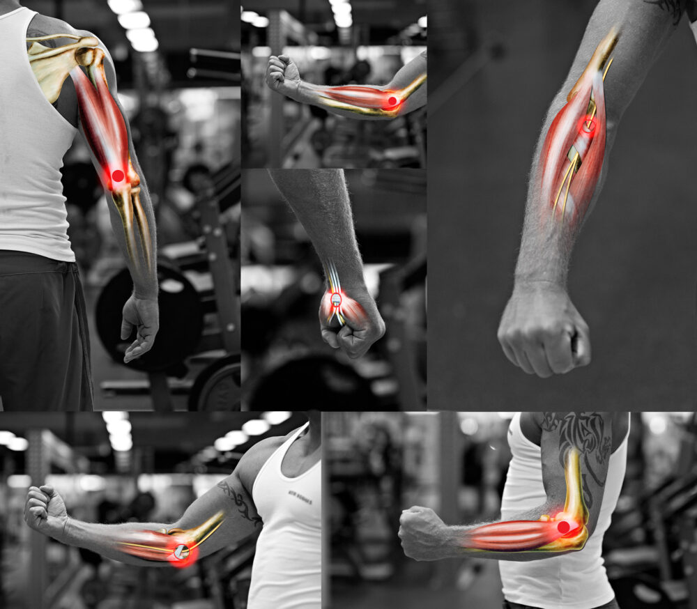 Tricepstendinopati, medial epikondylalgi  (golfarmbåge), nervinklämning, radialtunnelsyndrom, kubitaltunnelsyndrom, lateral epikondylalgi (tennisarmbåge).